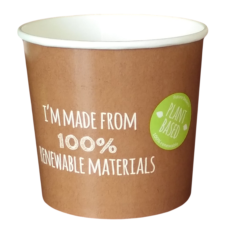 Huhtamaki Future Smart ™ Food to go container are made of 100% renewable, plant-based raw materials. A coating based on sugar cane is used for these containers.
