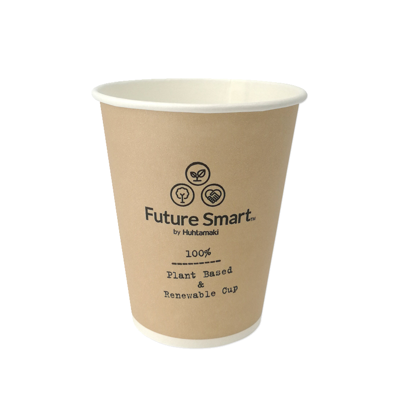 100 % renewable paper cup made from plants. Huhtamaki Future Smart™ eliminates the use of materials from fossil based petrochemicals and is the first cost economical cup with bio-based lining. Huhtamaki Future Smart uses PEFC certified paperboard from sustainably managed forests only.