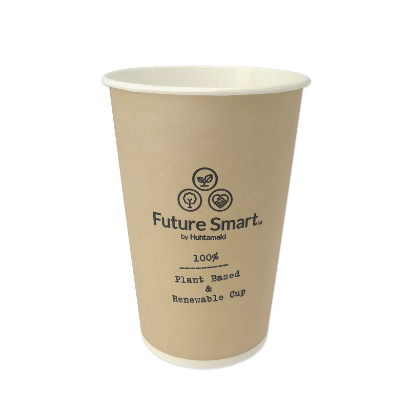 100 % renewable paper cup made from plants. Huhtamaki Future Smart™ eliminates the use of materials from fossil based petrochemicals and is the first cost economical cup with bio-based lining. Huhtamaki Future Smart™ uses PEFC™ DC-COC-001054 certified paperboard from sustainably managed forests only.
