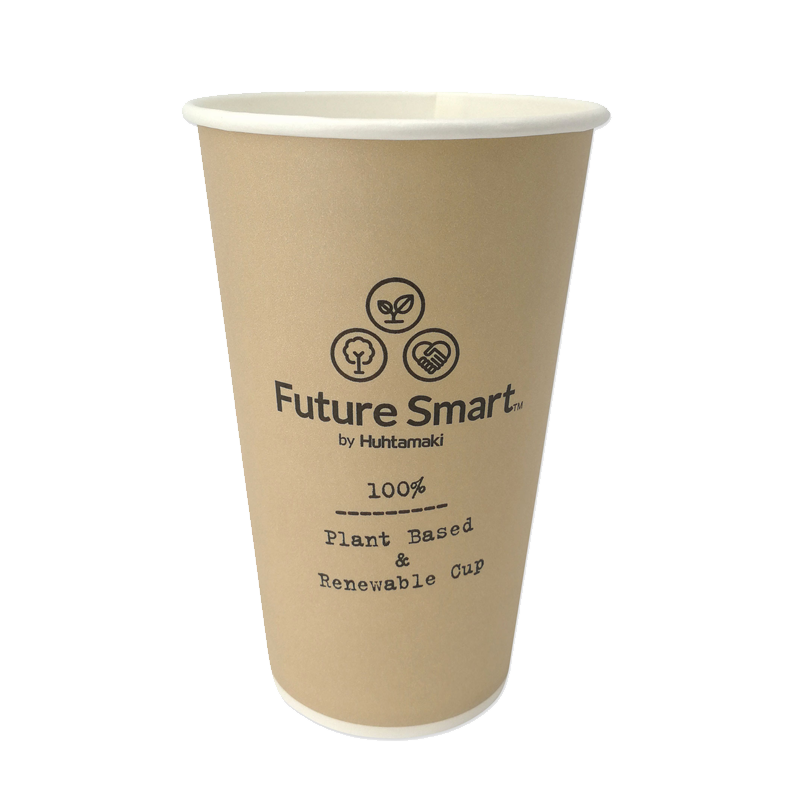 100 % renewable paper cup made from plants. Huhtamaki Future Smart™ eliminates the use of materials from fossil based petrochemicals and is the first cost economical cup with bio-based lining. Huhtamaki Future Smart uses PEFC certified paperboard from sustainably managed forests only.