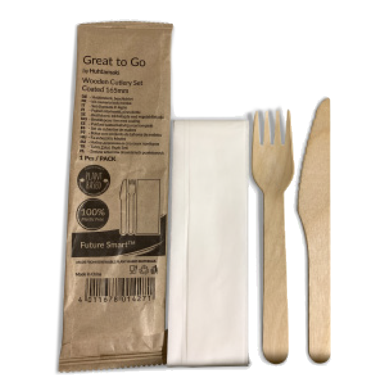 Future Smart™ wooden cutlery set with napkin – coated, 165 mm